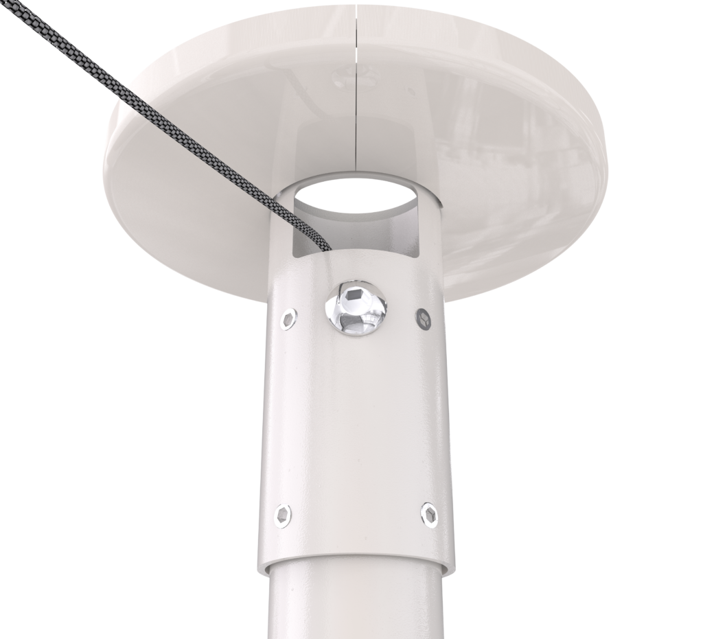 • Integrated cable management allows cables to pass through the centre of the pole to the