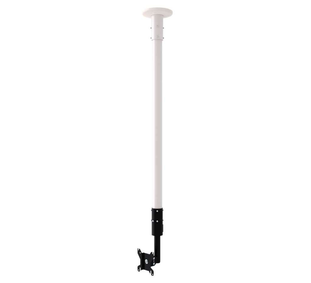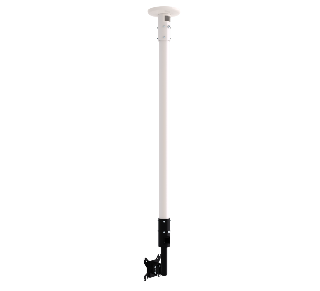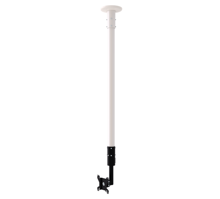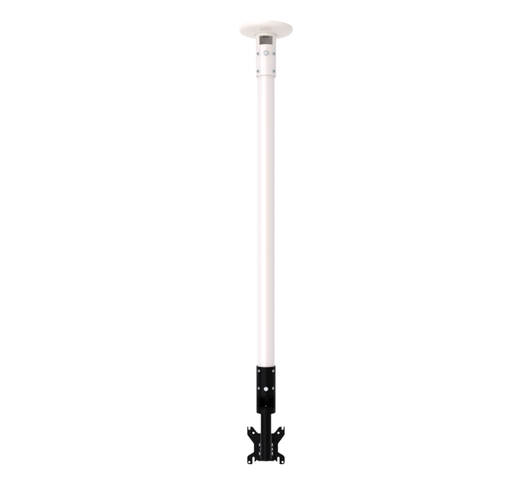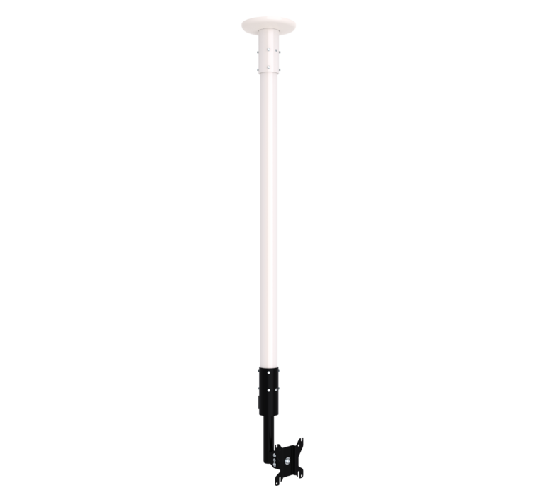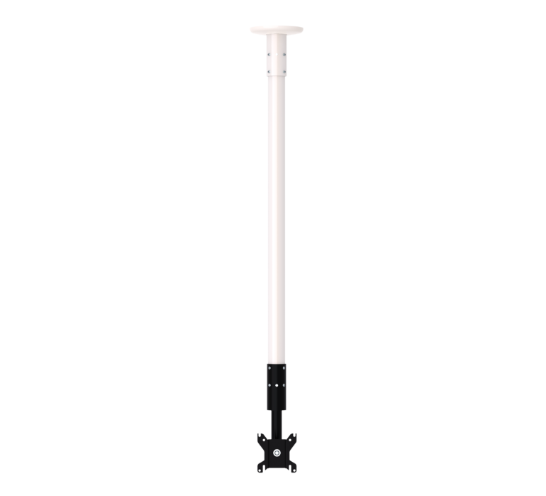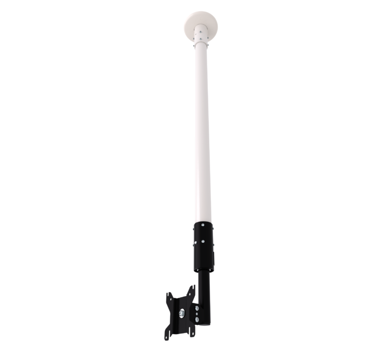 The BT7553-100-BW is a versatile flat screen mounting solution with a 100cm white pole, ceiling mount, and black screen interface. It offers easy tool-less adjustment of tilt, swivel and screen rotation, making it quick and simple to switch between landscape and portrait orientations.