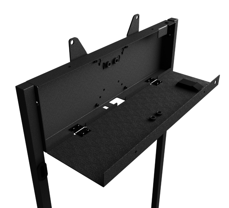 • Lockable storage compartment provides access for connecting devices