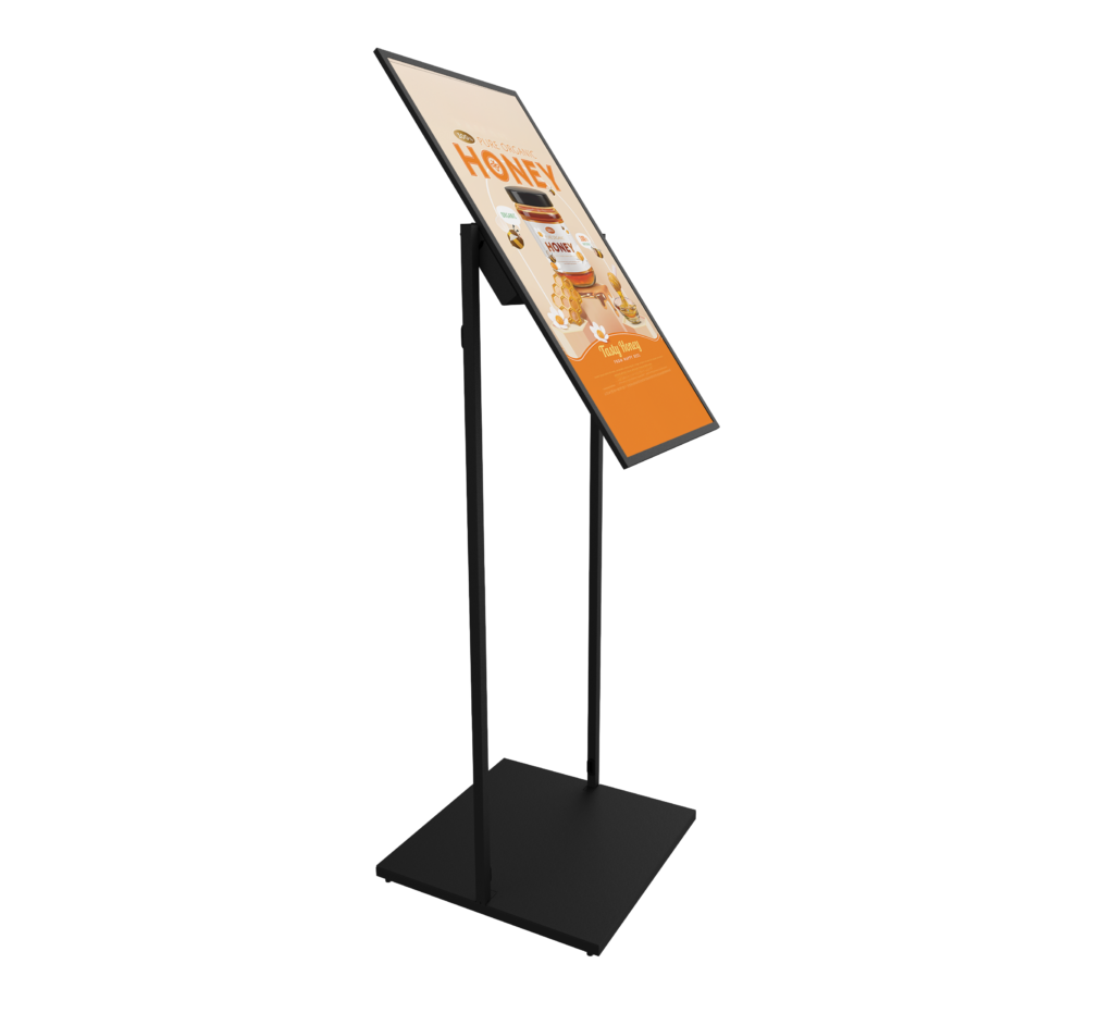 The BT7612 is a stylish, freestanding floor stand designed for E-Paper and standard displays up to 43". Featuring a minimalist design and practical functionality, the stand provides an elegant solution for presenting a single screen in public or commercial environments. Supplied with all necessary mounting components, the stand offers a quick, straightforward installation with options to remove the base cover or to bolt directly to the floor. Ideal for retail, wayfinding, and digital signage, the BT7612 combines modern style with everyday practicality to deliver maximum impact within a compact footprint.