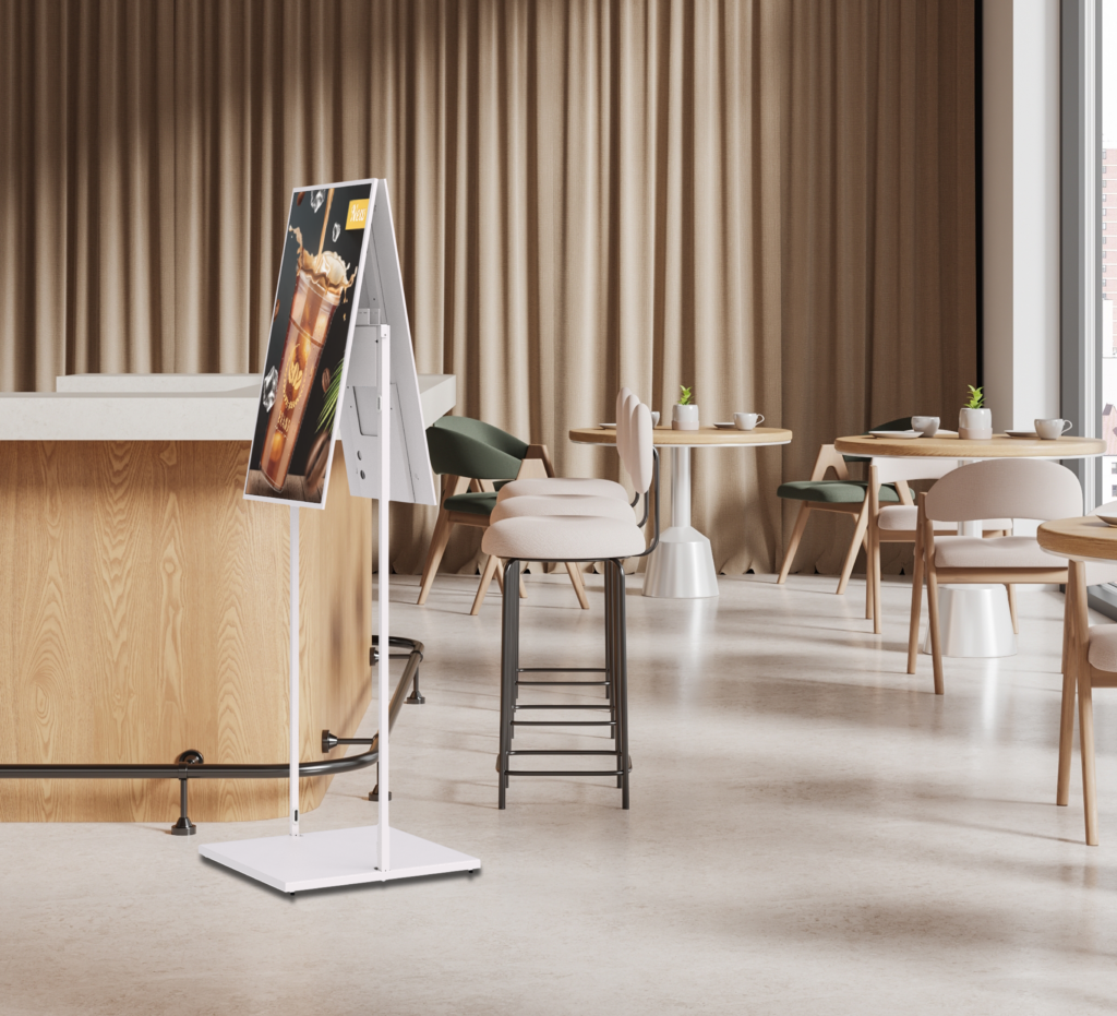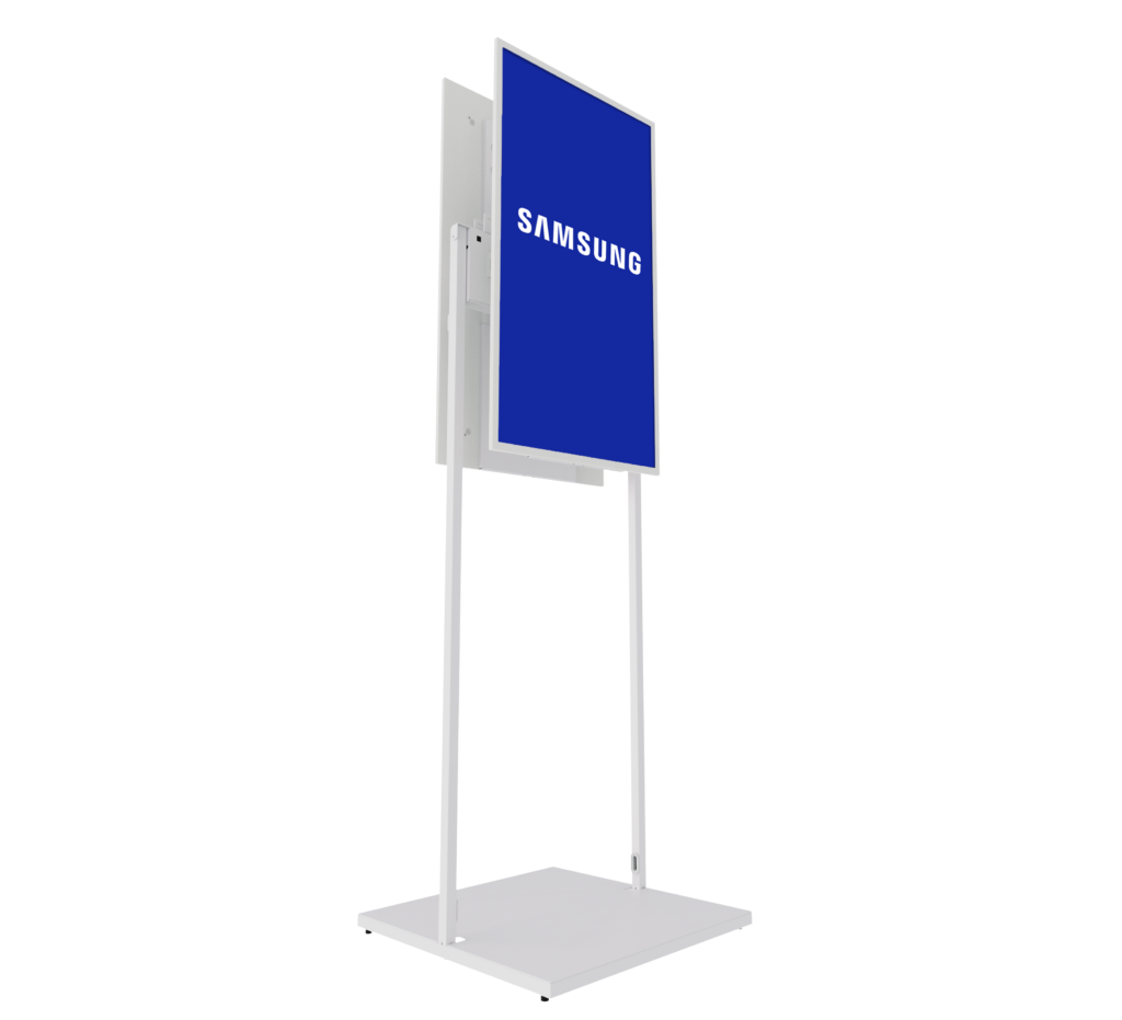 The BT7613-SAM32 is a freestanding floor stand designed to mount two Samsung 32" E-Paper EMDX displays back-to-back. Its lightweight, minimalist structure provides a clean and elegant solution for presenting dual screens in public or commercial environments. Featuring protective rear covers and intergrated cable management, the stand is supplied with all required mounting components for a quick, straightforward installation with options to remove the base cover or to bolt the stand directly to the floor. Ideal for retail, wayfinding and public spaces, maximising visibility from both sides while maintaining a small footprint.