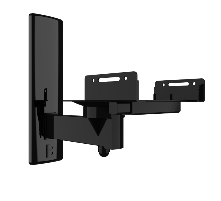 Suitable for bookshelf speakers including curved front types, the BT77 wall mount features a padded, adjustable side clamping design which grips medium to large sized speakers without marking them. The mounts are easy to install with tilt and swivel adjustments that allow for optimal speaker positioning once mounted. Supplied in pairs, the BT77 also includes cover plates for a neat and tidy finish.