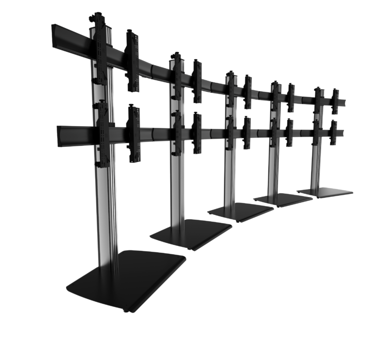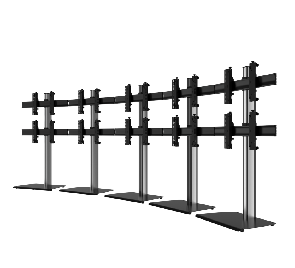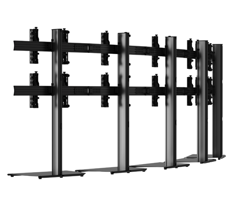Designed to create curved videowalls, the BT8376 is a freestanding mounting solution with a universal design suitable for all videowall screens from 39" to 75". As part of B-Tech's dynamic System X range, this contemporary mounting solution is lightweight yet incredibly strong, has a high-end aesthetic quality and comes with important time saving features such as integrated angle guides, tool-less micro-adjustment and a universal screen position spacer to speed up the installation process.