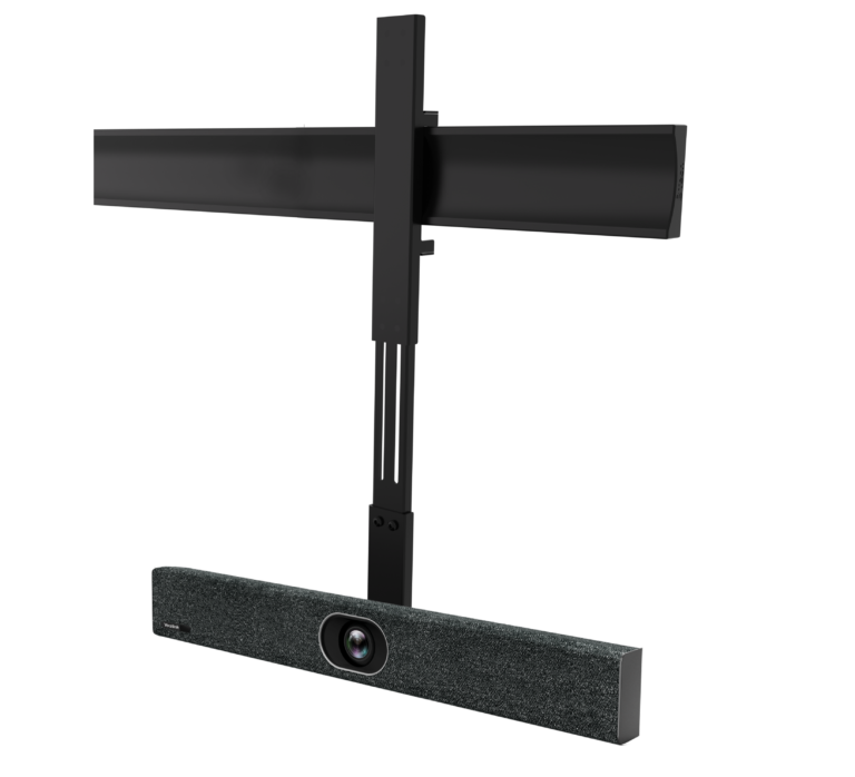 The BT8390-SA allows B-Tech shelves and other accessory mounts to be fitted onto System X installations, making it the ideal solution for adding a VC camera to a twin screen setup. The arm hooks onto BT8390 mounting rails and can be positioned so that the mounted accessory is either above or below the screen(s). Featuring an adjustable extension arm that can be freely positioned anywhere along the length of the rail, the BT8390-SA is suitable for use with a large range of screen sizes.