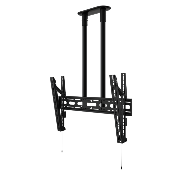 Designed to ceiling mount screens over 65", the BT8449 is an extra-large ceiling mount which is available with a choice of four different drop lengths; 1.5m, 2m and 3m. The twin pole design and heavy duty steel provides strength and rigidity, allowing for a maximum load of up to 80kg. Other features include a choice of 4 tilt positions from 0° up to 15°, post installation screen alignment and height adjustment screws to help level the screen once mounted. Available with a choice of Black, White or Chrome poles.