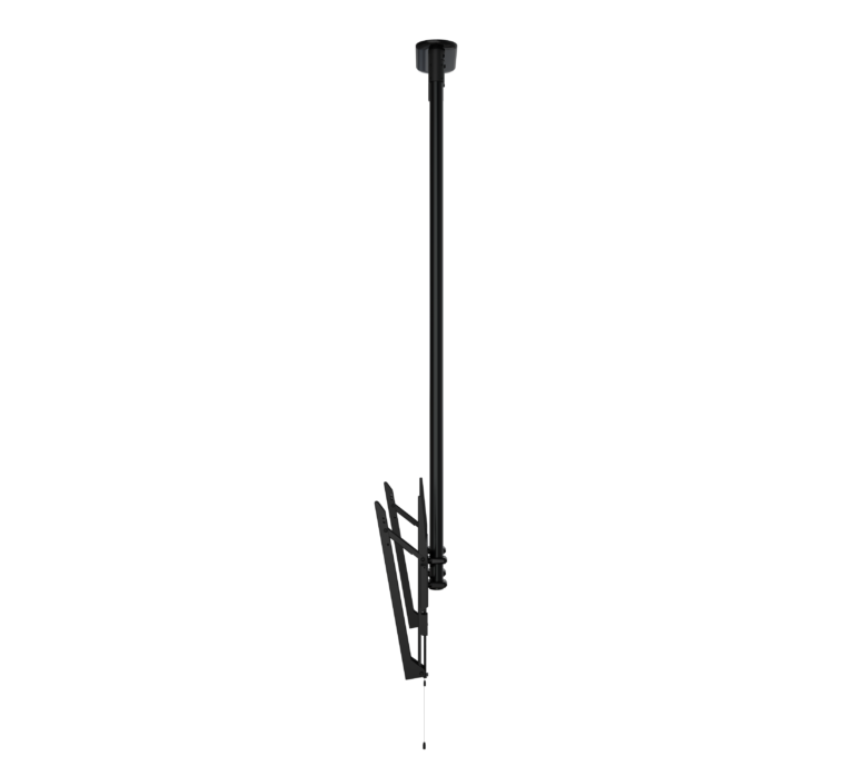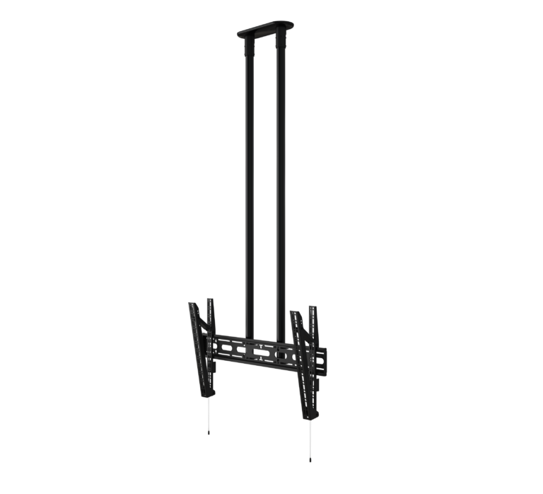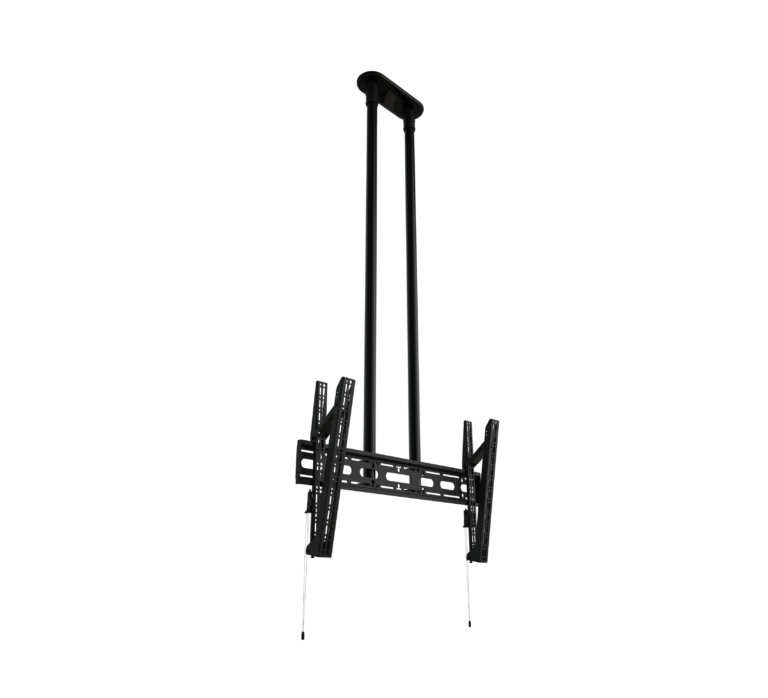 Designed to ceiling mount screens over 65", the BT8449 is an extra-large ceiling mount which is available with a choice of four different drop lengths; 1m, 1.5m and 3m. The twin pole design and heavy duty steel provides strength and rigidity, allowing for a maximum load of up to 80kg. Other features include a choice of 4 tilt positions from 0° up to 15°, post installation screen alignment and height adjustment screws to help level the screen once mounted. Available with a choice of Black, White or Chrome poles.