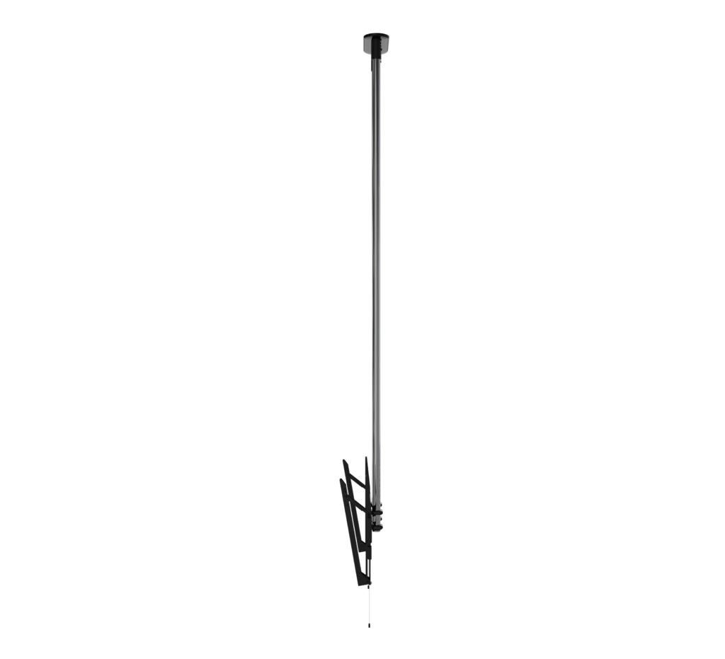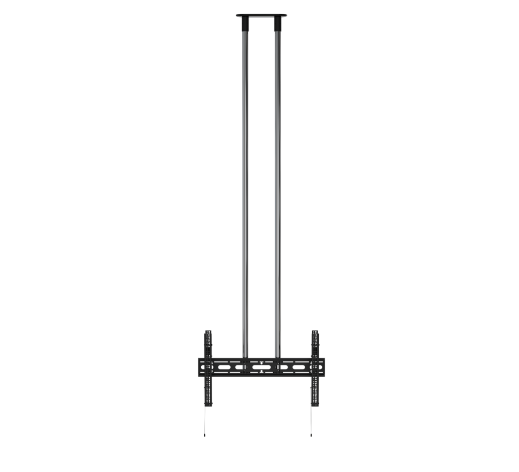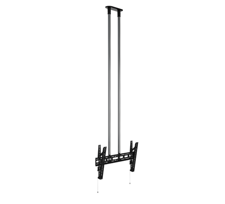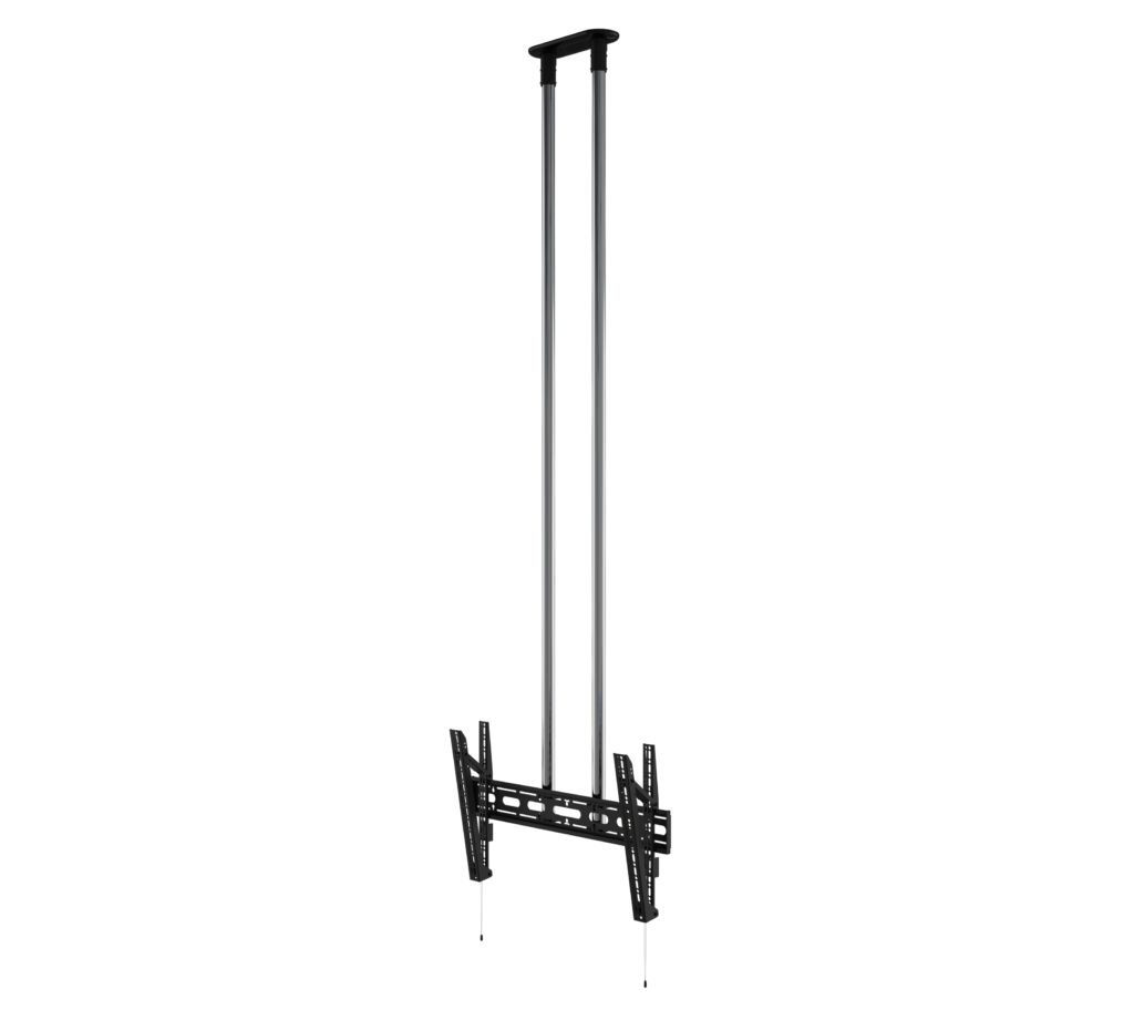 Designed to ceiling mount screens over 65", the BT8449 is an extra-large ceiling mount which is available with a choice of four different drop lengths; 1m, 1.5m and 2m. The twin pole design and heavy duty steel provides strength and rigidity, allowing for a maximum load of up to 80kg. Other features include a choice of 4 tilt positions from 0° up to 15°, post installation screen alignment and height adjustment screws to help level the screen once mounted. Available with a choice of Black, White or Chrome poles.