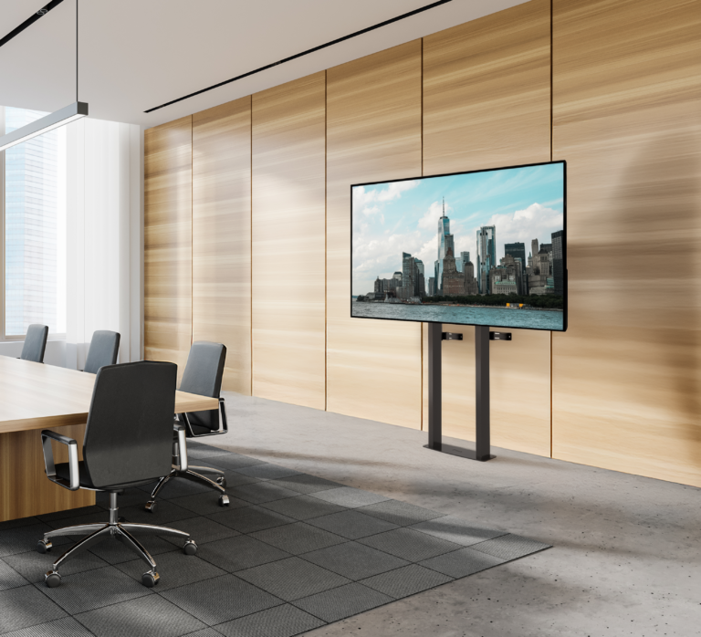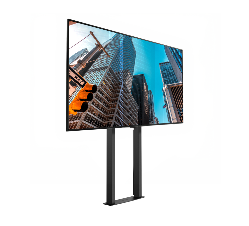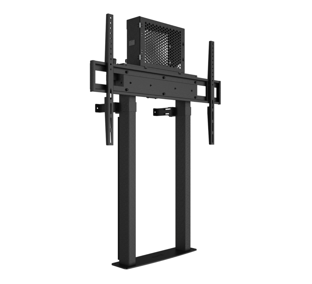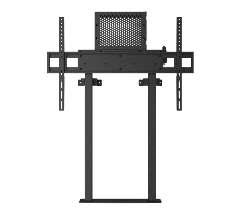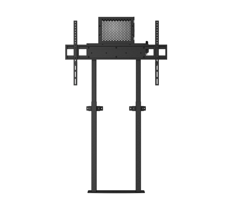 The BT8559 is a motorised, height-adjustable floor-to-wall stand designed for displays up to 100" in size. Its electronic height adjustment system allows for effortless raising and lowering of the screen via a wired control panel, with an adjustment range of up to 650mm that makes the display accessible to a variety of users. Capable of mounting interactive touchscreens of up to 100kg and featuring a sleek and modern design aesthetic, quick assembly and ease of use, the BT8559’s performance in educational and corporate settings is unmatched. An integrated storage unit at the rear provides convenient space for cable management and AV equipment, making the complete AV set up both neat and practical